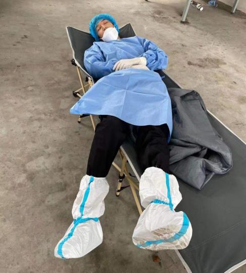 根據(jù)疫情防控需要,在一線工作的人員必須穿上防護(hù)服,帶上防護(hù)口罩,一天工作下來,時(shí)浩的雙手都被汗水泡白,從第一次核酸檢測(cè)到第三次核酸檢測(cè),時(shí)浩用行動(dòng)踐行著網(wǎng)格力量。“由于實(shí)在是太累,中午躺在椅子上一會(huì)就睡著了。”時(shí)浩表示,時(shí)間緊迫,只能睡一會(huì)就又要起來繼續(xù)協(xié)助核酸檢測(cè)工作。