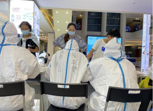 在核酸檢測現(xiàn)場,陶亞婕為前來采樣的居民們登記信息、核對身份、引導(dǎo)居民有序排隊(duì),從第一次核酸檢測以來,每次都是從早上7點(diǎn)一直工作到深夜。由于穿著厚厚的防護(hù)服,一整天的工作下來,衣服都已經(jīng)被汗浸濕,她的無私奉獻(xiàn)精神就連其他社區(qū)工作人員也感到深深敬佩。“一想到自己是在做有意義的事,再苦再累也不怕了。”陶亞婕表示,這次能夠參與到核酸檢測工作中來,是自己一生中都將引以為傲的一件事。