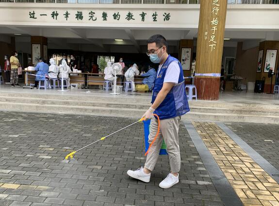 7月29日,一個青春靚麗的小姐姐來到了南京市棲霞區(qū)馬群街道蛇盤社區(qū)核酸檢測點,報名參加志愿者,來者正是夏悅的女朋友——刁玲玉,“我是金陵小學(xué)的老師,現(xiàn)在暑假期間,有時間參加志愿服務(wù),有什么我能做的?”