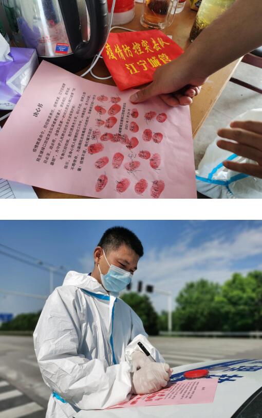 “讓我先簽!”“突擊隊員們共進退!”“疫情面前,我們都是戰(zhàn)士。”……一份份滿是紅手印的決心書,道出了區(qū)城管局105名祿口防疫突擊隊全體隊員的鄭重承諾。疫情突襲,南京市江寧區(qū)城管局支援祿口防疫突擊隊第一時間奔赴祿口街道,守土有責、恪盡職守,堅持把學習黨史“我為群眾辦實事”體現(xiàn)在基層一線。