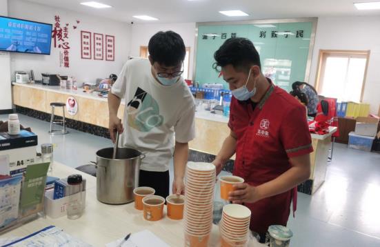 一杯杯綠豆湯,是一份份擔(dān)當(dāng)與愛心,為炎炎夏日中奮戰(zhàn)在一線的工作人員送來了夏日的清涼。