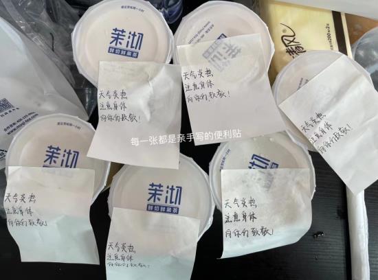“給他們送點(diǎn)水吧”、“這天太熱了,別中暑了”、“不然送綠豆湯吧”……經(jīng)過微信群里一陣熱烈的商討,天元吉第城小區(qū)業(yè)主代表為堅(jiān)守在小區(qū)門口的疫情防控工作人員送去了解暑的綠豆湯;同樣積極為疫情防控工作人員著想的還有很多,在城市之光小區(qū)和天景山第一幼兒園的核酸檢測點(diǎn),不少熱心市民送來了清清涼涼的奶茶等慰問品來慰問烈日下依然堅(jiān)守的疫情防控工作人員。