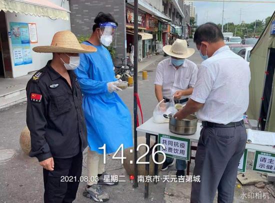 第四輪全員核酸檢測工作正在有序開展,結(jié)束了幾天的大雨天氣,南京仿佛又回歸到盛夏時(shí)節(jié)。炎熱的天氣,把社區(qū)里的疫情防控工作人員熱得止不住流汗,皮膚也曬得黑了一度,看到如此辛苦的工作人員,天元吉第城小區(qū)的業(yè)主們坐不住了。
