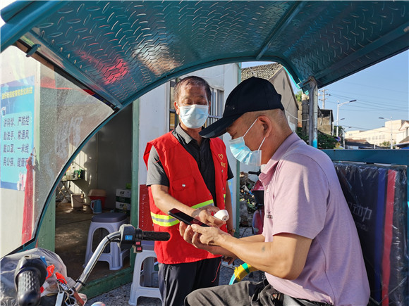 “您好,請(qǐng)出示您的‘蘇康碼’。”69歲老黨員周忠文遠(yuǎn)遠(yuǎn)地就提醒行人打開“蘇康碼”,同時(shí)測(cè)量體溫才可以通過。一個(gè)黨員就是一面旗幟,在疫情發(fā)生后,老黨員主動(dòng)請(qǐng)纓,擔(dān)起值守卡口的工作,“雖然年紀(jì)大了,但作為一名老黨員,我更要為疫情防控工作奉獻(xiàn)一份力量!”