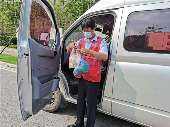 蔬菜、生活用品、快遞是居家隔離人員需求最多的幾項(xiàng)服務(wù),雖然不能邁出家門(mén),但他們通過(guò)一條微信、一個(gè)電話就可以直接“下單”,志愿者就會(huì)把他們需要的東西送到家門(mén)口。為服務(wù)好居家隔離人員的生活,攝山村委會(huì)安排專人通過(guò)“掌上云社區(qū)”微信群溝通和電話聯(lián)絡(luò),及時(shí)掌握隔離人員的身體、生活狀況,了解各類需求。根據(jù)隔離人員的需求,村委會(huì)干部安排專車(chē)和志愿者,每天幫忙采購(gòu)蔬菜、水果、雞蛋等生活必需品,到取貨點(diǎn)代取快遞,做好防護(hù)的基礎(chǔ)上,將物資配送到居民門(mén)口,確保隔離人員足不出戶、安心隔離。