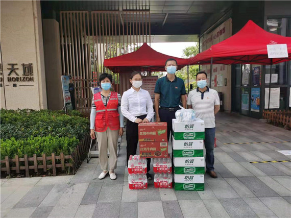 “社區(qū)+物業(yè)”兩位一體,齊心協(xié)力“戰(zhàn)”疫情。近日,南京市棲霞區(qū)棲霞街道攝山村黨委書(shū)記陳俊同志先后前往華僑城翡翠天域花園和翡翠天域星園一期2個(gè)小區(qū),看望慰問(wèn)奮戰(zhàn)在一線的物業(yè)工作人員,為他們送去了方便面、礦泉水等保障物資,對(duì)他們連日來(lái)的辛勤付出表示感謝。