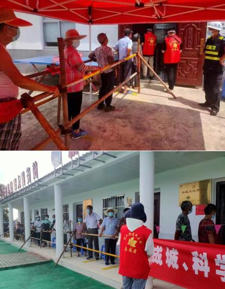 入場(chǎng)測(cè)體溫、查驗(yàn)蘇康碼、登記身份信息、宣傳手冊(cè)發(fā)放……工作人員有條不紊地進(jìn)行著核酸檢測(cè)工作。同時(shí),防止村民們?cè)谘谉岬奶鞖饫锇l(fā)生中暑,民主村還在現(xiàn)場(chǎng)增設(shè)了遮陽(yáng)棚,除此之外,工作人員還向前來(lái)采樣的村民們發(fā)放宣傳手冊(cè),為他們普及相關(guān)防疫知識(shí),讓核酸檢測(cè)工作更加深入人心。