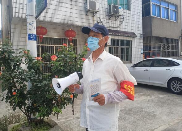 該社區(qū)河南支部70多歲的老黨員胡大玉主動挺身而出,踐行著初心使命,用自己的微薄之力為疫情防控做出貢獻。他每天拿著喇叭在村里循環(huán)播放防疫知識,勸導居民外出戴口罩做好個人防護??吹骄用裨蚜奶欤皶r勸阻;看到海報、橫幅破損了,他也及時更換。“雖然年紀大了,但我是一名共產(chǎn)黨員,在特殊時期,就應該主動站出來,為社會做點貢獻。”胡大玉說道。