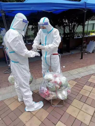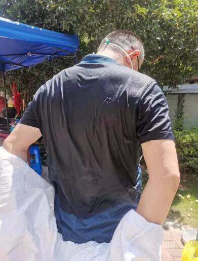 清晨,潘成偉和其他隊員一樣穿起厚厚的防護(hù)衣,戴上了防護(hù)面罩,從一件件小事慢慢著手,買菜送菜、幫助鄰居們送垃圾、買藥品、組織核酸檢測、上門核查等等。一件件看似微不足道的小事,在這個炎熱的夏季里,卻深深的烙在了志愿者們每一個人的心中。他們真實地體驗到了一線工作者的辛苦。累,算什么,苦,又算什么?雖然汗水浸濕了衣服,但他們不曾后悔,為了一個共同的目標(biāo)奮斗著。
