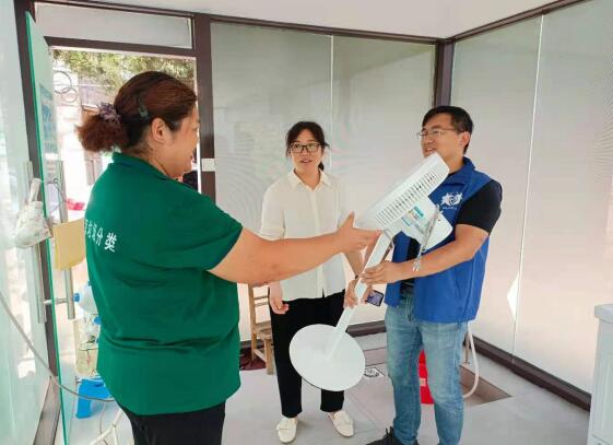 7月20日一早棲霞街道江南廠社區(qū)工會委員會,早早的來到社區(qū)垃圾分類點(diǎn)位上,給志愿者們送上一份“清涼”,讓這個(gè)炎熱的“酷暑”變的“風(fēng)涼”。 夏季,日出時(shí)間越來越早,七點(diǎn)鐘左右路面上的空氣便已有了暑熱,地面上也有著“燒烤”的感覺。社區(qū)4處垃圾分類點(diǎn)沒有降溫電氣,社區(qū)工會考慮到夏天酷暑,垃圾分類點(diǎn)房內(nèi)溫度很高,為4處垃圾分類點(diǎn)配備了降溫風(fēng)扇,能讓炎熱的垃圾分類點(diǎn)房有一絲絲晾意。