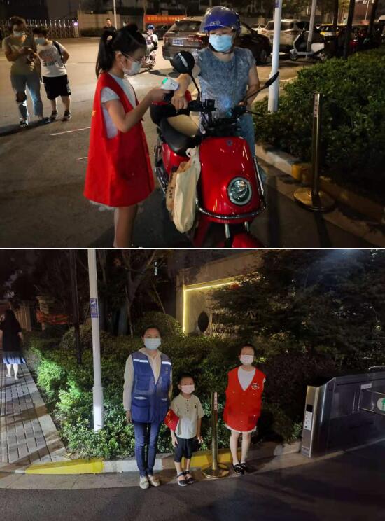 “祝你生日快樂,媽媽你是我的榜樣。”8月19日是燕子磯社區(qū)副主任葛曉雯的生日,但是生日當天她依然堅守在崗位上,從早上七點就開始在小區(qū)大門值班值守,巡查商鋪防疫情況,生日的到來并沒有對于她參與防疫工作有什么影響。晚上她的兒女作為小小志愿者,主動陪同媽媽一起在交通卡口進行值守。“我的媽媽是我的榜樣,她用行動告訴我應該成為一個怎樣的人才是有意義有價值的。”在防疫的一線,葛曉雯和她的兒女就在引導居民配合查驗蘇康碼、測量體溫、登記信息中度過。