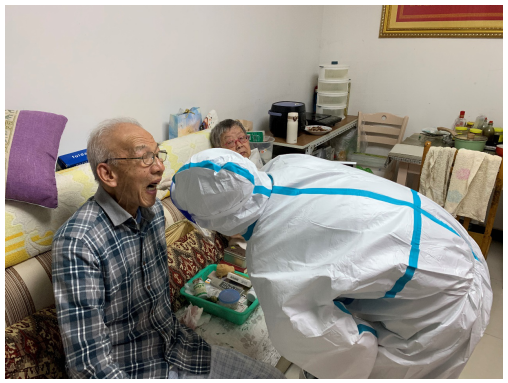 該村組成志愿服務小組,通過電話聯(lián)系、入戶走訪等方式,挨家挨戶告知核酸檢測工作的開展,確保通知到位。對于一些確實不能前往集中檢測點的老人和殘疾人群體,志愿者們便登記好他們的相關信息,帶領醫(yī)護人員親自上門進行核酸檢測。每到一戶家庭,醫(yī)護人員都會小心仔細地為他們進行采樣,并在完成后叮囑他們做好日常防護和居家消毒。“自己本身就是行動不便,現(xiàn)在能上門進行核酸檢測真是太方便了,省心省力。”老人說道。