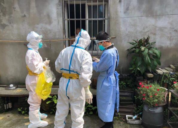 由于疫情防控工作的需要,居家隔離人員不能自主外出,面對(duì)一輪又一輪的核酸檢測(cè)工作,2號(hào)網(wǎng)格員王鳴帶領(lǐng)醫(yī)護(hù)人員前往他們家中,為他們將核酸檢測(cè)“送”上門。因?yàn)樘鞖庋谉?,王鳴又穿著隔離服,一整天工作下來,衣服都被汗水浸濕。同時(shí),居家隔離人員人數(shù)多,地點(diǎn)不集中,王鳴每天都要上門走訪多戶,但他從來不喊苦不喊累,一直堅(jiān)守在自己的崗位上。