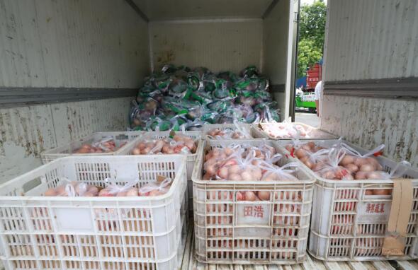 雞蛋、紫菜、水果、蔬菜......隨著一輛裝滿生活物資的大客車駛?cè)氪鍍?nèi),打開車門,一份份分裝好的雞蛋和生活食材就映入眼簾。村工作人員、社區(qū)民警齊心協(xié)力將物資搬運(yùn)下車并根據(jù)居家人員名單將物資有序分好。隨后,村工作人員和社區(qū)民警劃好“責(zé)任田”,一個個或是用竹籃,或是用塑料桶將物資送達(dá)轄區(qū)155戶村民的家中。
