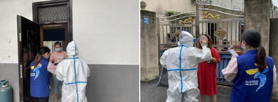 為了減少核酸檢測(cè)的排隊(duì)時(shí)間和成本,網(wǎng)格員和醫(yī)務(wù)人員一同上門幫居家檢測(cè)人員檢測(cè)核酸,讓群眾少跑腿。