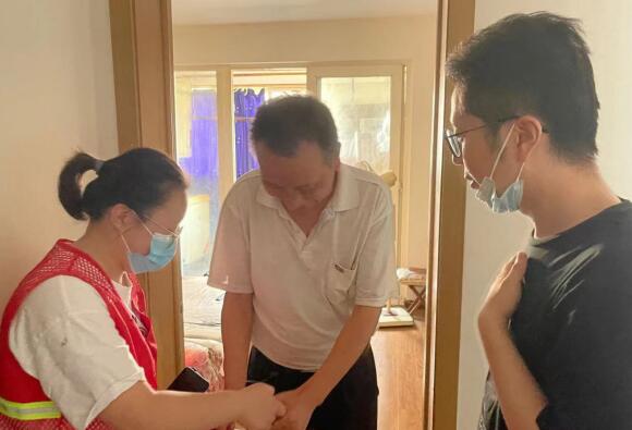在楊師傅家中,接過社區(qū)帶來的月餅、牛奶等慰問品,楊師傅心里特別感動。社區(qū)黨總支書記張偉與老人拉家常,噓寒問暖,叮囑老人要照顧好身體,老人高興地說:“現(xiàn)在社區(qū)暖陽小隊經(jīng)常上門陪我說說話、量血壓,謝謝你們的關(guān)心。”