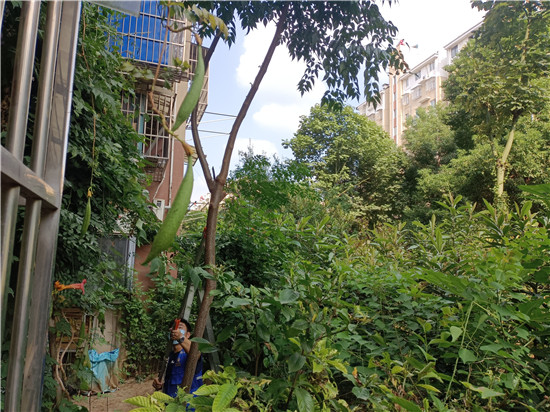 “沒修剪前,晾曬很受影響,特別是樹枝一搖晃就會碰到我家的衣物,很是鬧心了。沒辦法,就只能找社區(qū)幫忙。社區(qū)黨員辛苦了,為我們辦了件實事。”306室業(yè)主表示。