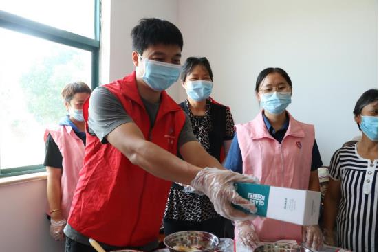 一塊月餅一片情?,F(xiàn)場(chǎng),大家在志愿者帶領(lǐng)下,準(zhǔn)備制作月餅的手套、模具、面皮、餡料等工具和材料。雖然都是第一次做,但大家戴上手套后儼然“專(zhuān)業(yè)面點(diǎn)師”的樣子。你和面、我包餡、他壓模,大伙分工合作,每個(gè)步驟都做得井然有序。當(dāng)看到一個(gè)個(gè)漂亮的月餅從自己手中誕生時(shí),大家都異常興奮和滿(mǎn)足。村民楊阿姨開(kāi)心地說(shuō):“這是我第一次自己動(dòng)手做月餅,覺(jué)得意義非凡,一定要帶回去和家人們好好分享這份團(tuán)圓的喜悅!”