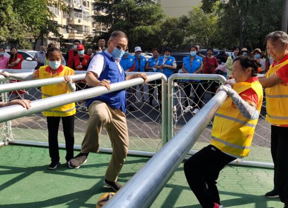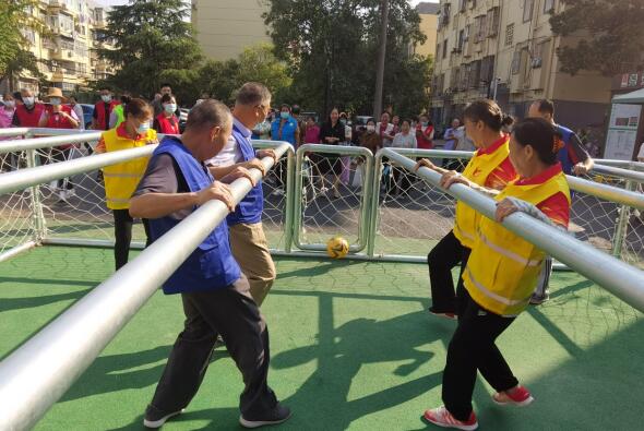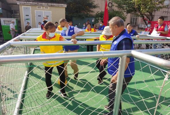 9月17日,一場別開生面的比賽——“堯安新村社區(qū)第一屆老年欄式足球”在球場上熱熱鬧鬧的開始了。此次參加比賽的有7支隊伍,分別來自社區(qū)轄區(qū)內的各個小區(qū)。每支隊伍身著不同顏色的馬甲,他們是老黨員義工隊、紅十字隊、巾幗志愿者隊、城市治理志愿者隊、時間銀行隊、工會志愿者隊以及網(wǎng)格志愿者隊,代表了堯安新村社區(qū)各方志愿力量,展現(xiàn)志愿者隊伍的風采。