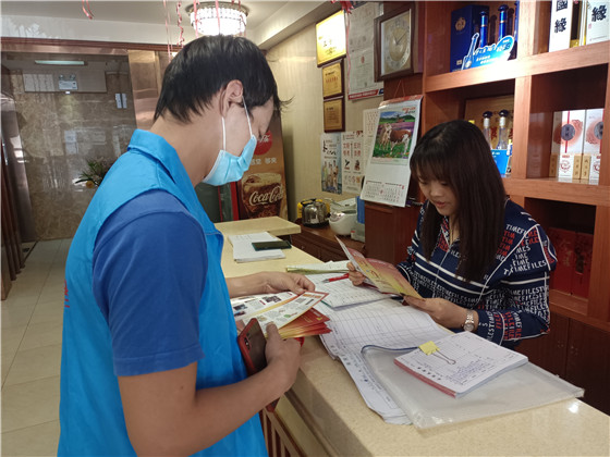 活動中,志愿者們走進沿街大小商鋪,采用通俗易懂的語言向商鋪經(jīng)營者們講解了消防法律法規(guī)、消防安全責(zé)任制,普及了火災(zāi)預(yù)防、火場逃生、火災(zāi)自救等消防安全知識,為商戶發(fā)放宣傳手冊的同時,提醒他們要定期檢查商鋪的電線是否老化、滅火器材是否能正常使用、消防通道是否暢通等問題,及時整改落實,切實將火災(zāi)隱患扼殺在搖籃里,避免火災(zāi)事故的發(fā)生。
