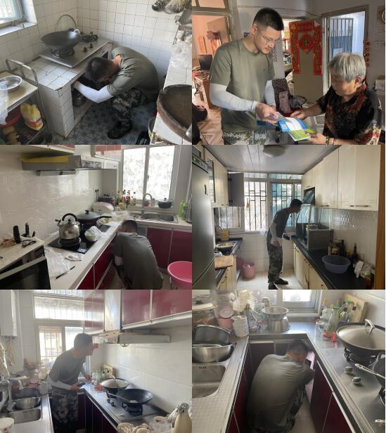社區(qū)安全員會同社區(qū)民兵深入高齡老人家中,對用氣用電情況進行摸排檢查,并重點檢查了煤氣軟管,電線插座等情況,由于廚房內油污較多,管道長期使用,灶具可能出現(xiàn)故障,導氣的橡膠管也容易老化。部分居民由于疏忽或安全意識不到位,在橡膠管與灶具或燃氣管道連接處沒有使用卡箍進行綁扎,造成密封不嚴,可燃氣體泄漏遇火源或電火花就會迅速燃燒甚至爆炸。檢查的同時,針對日常生活中經常遇到的事例及發(fā)生典型火災事故案例為切入點,為業(yè)主們講解了引發(fā)火災的原因、日常生活用電、用氣、用火注意事項、如何預防火災事故的發(fā)生等常識。