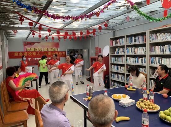 活動(dòng)現(xiàn)場(chǎng),退役老黨員們圍坐在一起,品美食、看演出。穿上紅裙子、拿起粉扇子……在歡快的音樂伴奏下,志愿者們熱情地跳起舞蹈、唱起歌謠,讓氣氛瞬間達(dá)到高潮。退役老黨員們則認(rèn)真地欣賞著志愿者們的表演,還不自覺地跟著音樂哼唱起來。