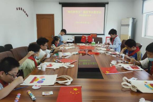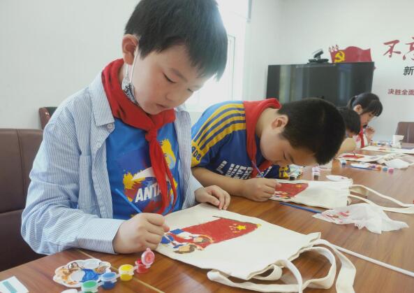 當天上午,青少年來到了新時代文明實踐站,在志愿者們的引導下,圍坐在桌子邊。在簡單的開場白后,志愿者向青少年介紹了活動的主要內容,帶領他們手繪國慶主題帆布包。青少年將需要的顏料擺放在手邊,用畫筆蘸滿顏料,開始在帆布包上畫了起來。一面面五星紅旗、一座座天安門的圖案在青少年的手下現(xiàn)出鮮艷的色彩,青少年們開心極了,互相分享自己的成果,現(xiàn)場的氛圍熱鬧和諧。