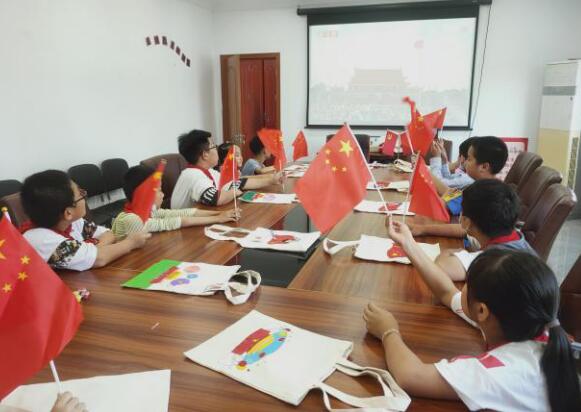 現(xiàn)場,志愿者們帶領青少年觀看了十一天安門慶典直播,當國歌奏響的時候,青少年都不由自主共同齊唱著國歌,抒發(fā)自己愛國的感情。