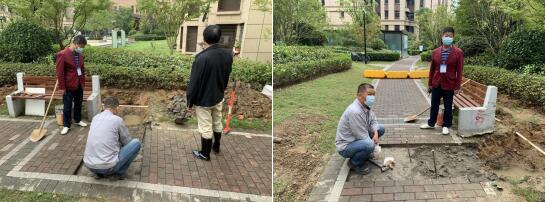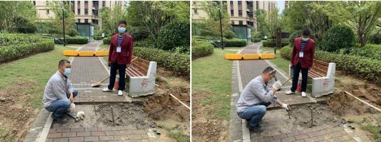“您好,我是城市治理委員會公眾委員,云霞居7、8幢之間的消防水管出現(xiàn)滲漏,麻煩盡快過來維修。”在巡查過程中,城市治理委員會公眾委員發(fā)現(xiàn)云霞居小區(qū)7幢與8幢之間消防水管出現(xiàn)滲漏。城市治理委員會公眾委員當即聯(lián)系小區(qū)物業(yè)人員前來維修,得知有故障需維修,維修人員接到電話后第一時間到達現(xiàn)場,挖開地面,對地下消防水管進行檢測,針對滲漏部位進行修補。城市治理委員會公眾委員也積極參與到維修工作中來,盡可能幫助維修工人加快維修進度,以最短時間完成維修,不耽誤小區(qū)居民的正常出行。
