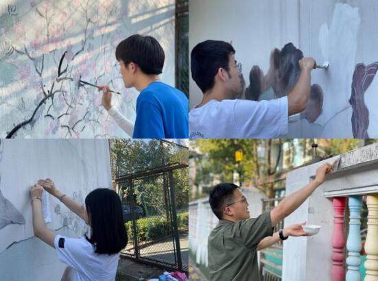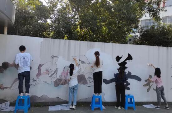 在本次活動(dòng)中,來(lái)自南京理工大學(xué)公共事務(wù)學(xué)院的學(xué)生們作為墻繪的主力軍,將“農(nóng)村美起來(lái)”和“綠水青山”作為活動(dòng)的主題,以社區(qū)白墻為畫(huà)板,繪出美好鄉(xiāng)村生活。在創(chuàng)作過(guò)程中,團(tuán)隊(duì)成員分工明確,清理場(chǎng)地、勾勒底稿、墻體上色,迅速進(jìn)入工作狀態(tài)。在大家的共同努力下,一幅幅生動(dòng)的圖畫(huà)躍然墻上。此外,團(tuán)隊(duì)成員還對(duì)社區(qū)內(nèi)的幼兒園外墻進(jìn)行了粉刷,孩子們積極參與,從如何調(diào)色到怎樣繪制,再到如何保護(hù)社會(huì)環(huán)境,大學(xué)生們一步一步向孩子們傳授著墻繪的技巧。