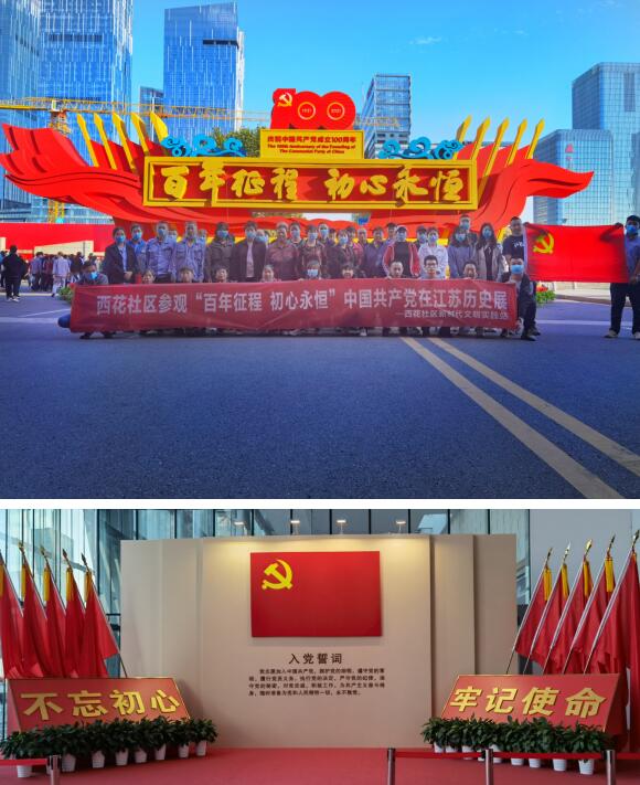 深入開展好黨史學習教育,2021年10月12日,南京市棲霞區(qū)棲霞街道西花社區(qū)黨支部依托新時代文明實踐站共組織黨員、居民代表40余人參觀“‘百年征程 初心永恒’——中國共產(chǎn)黨在江蘇歷史展”。