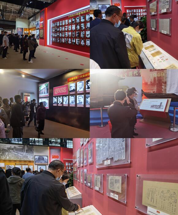進入展覽首先映入眼簾的是“百年征程,初心永恒”的巨大展板,一路走過南湖紅船、“京電號”、春雷水泥船、“蛟龍?zhí)?rdquo;的模型。室內(nèi)展區(qū),一張張模糊的照片、一份份泛黃的檔案、還有見證著歷史的實物文物,生動地向我們展示了百年間中國共產(chǎn)黨在江蘇從無到有、不斷壯大的歷史偉業(yè)。