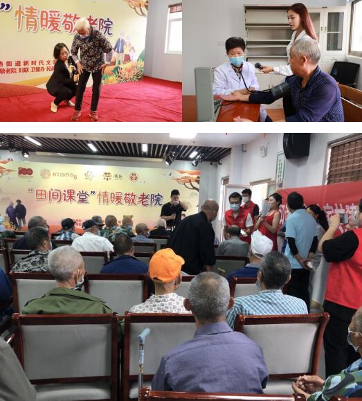 活動開始前,新躍社區(qū)志愿者拉橫幅、搬椅子、攙扶退役軍人們到現(xiàn)場并分發(fā)口罩,詳細(xì)的跟老人介紹本次活動的流程。京劇演員一開腔、一亮相本次活動正式拉開帷幕,《草原贊歌》、皮影戲、女聲京劇、民樂等耳熟能詳?shù)墓?jié)目輪番上演,給現(xiàn)場觀眾帶來一場精美絕倫的視覺盛宴,退役軍人們紛紛拍手叫好。在互動環(huán)節(jié),黨史知識問答迎來了本次活動的高潮,隨著主持人一個又一個的問題拋出,退役軍人們紛紛搶答,現(xiàn)場學(xué)習(xí)氛圍濃厚。與此同時,新躍社區(qū)還特別邀請了江寧區(qū)紅十字會為退役軍人們義診,現(xiàn)場設(shè)置血糖、血壓、視力檢測,醫(yī)生在檢查的同時還給他們分享了秋季養(yǎng)生知識,讓退役軍人們享受健康晚年。
