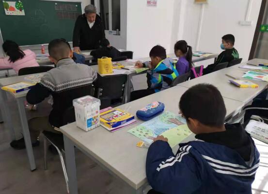 活動現(xiàn)場,授課老師將展示出來的繪畫作品掛在黑板上,讓小朋友們發(fā)揮自己的創(chuàng)意,對作品進(jìn)行創(chuàng)作,老師還為孩子們準(zhǔn)備了紙張、彩筆等繪畫材料,一邊耐心地講解整個流程,一邊觀察小朋友們的現(xiàn)場表現(xiàn)。遇到疑難問題,小朋友們便舉起手向老師請教,得到老師的解答后,便繼續(xù)開始自己的繪畫創(chuàng)作。在老師的幫助下,孩子們充分發(fā)揮自己的想象,畫上樹木、鮮花等并涂上色彩,一幅幅生動的圖畫便完成了。