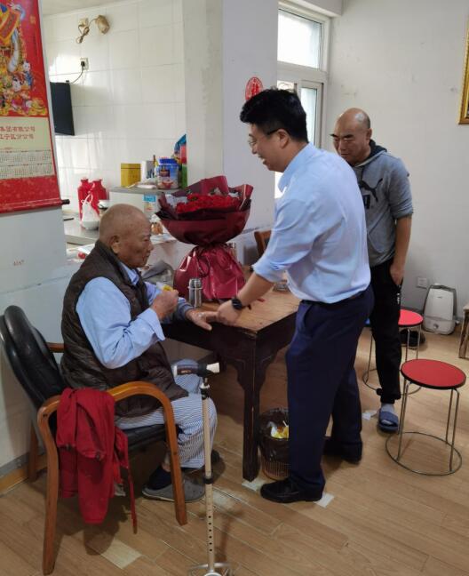 社區(qū)慰問小組首先來到百歲老人的家中,黨委書記與老人親切握手,與他交談起來,詢問他的身體狀況,關(guān)心他的日常起居。隨后,書記送上了慰問金,代表社區(qū)向老人表達(dá)了祝福,愿他幸福健康,享受清閑安逸的晚年生活。