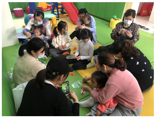 “大家好,我叫貝貝,今年三歲了。”“大家好,我叫馨馨,今年2歲半。”.....活動伊始,在幼兒們童真稚嫩的自我介紹下,他們對于自己的小伙伴們有了一個(gè)初步的了解。在彼此有了一定的了解后,游戲正式開始。幼兒們整齊站在志愿者的面前,跟著音樂的節(jié)奏做一些簡單的舉手、拍肩、蹦跳動作,在歡聲笑語中鍛煉肢體協(xié)調(diào)能力。現(xiàn)場,志愿者還邀請家長們抱著幼兒參與“小腳踩大腳”的游戲,在親密的互動中增進(jìn)親子之間的信任與依賴。