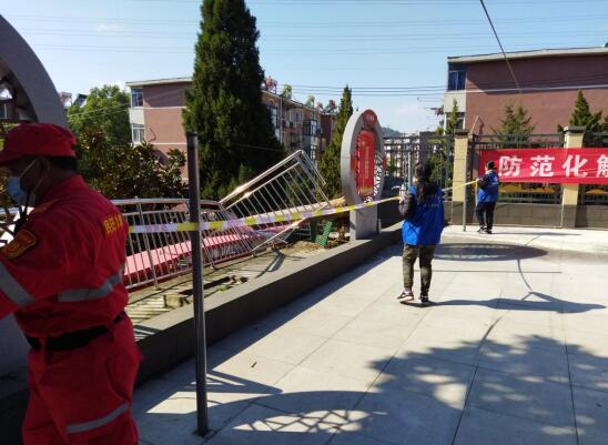 巨響驚動了淺睡的居民,也驚動了社區(qū)的網(wǎng)格員和平安志愿者們心中的安全防線。11月8日一大早,社區(qū)領(lǐng)導(dǎo)、網(wǎng)格員和志愿者就來到了廣場,拉起警戒線,防止大樹和欄桿二次倒塌,砸到散步和出行的居民,造成人身和財產(chǎn)損失。