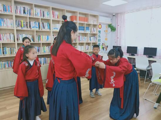 當(dāng)天,孩子們來(lái)到教育服務(wù)室中,在志愿者們的幫助下穿上了漢服,學(xué)習(xí)傳統(tǒng)禮儀。現(xiàn)場(chǎng),志愿者講解了漢服背后蘊(yùn)藏的豐富內(nèi)涵和精神意蘊(yùn),帶領(lǐng)他們體驗(yàn)、了解漢文化。