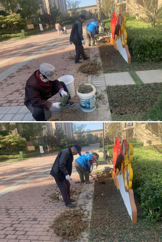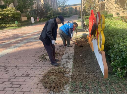 活動期間,大家有的用鐵鍬翻地、有的挖坑撒種,各個環(huán)節(jié)銜接有序,配合默契,利用手上的修剪工具,給綠化植被造型,“整容”;給已枯萎的花草進行補種;同時,將參差不齊的樹叢細心修補。經(jīng)過修剪后的樹叢橫平豎直,植被在被修剪后增加了通風與透光,陽光一照進來,顯得格外精神,道路兩旁的花朵也爭相斗艷,社區(qū)面貌換然一新,整齊美觀。風兒輕輕,草兒茵茵,烈日下的“園丁們”辛苦勞作著,在社區(qū)與他們的努力下,小區(qū)的花草書木熠熠生輝,充滿了生機,保證了植物良好生長。