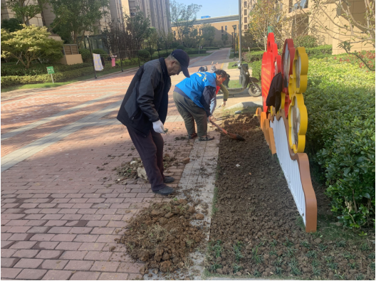 活動(dòng)期間,大家有的用鐵鍬翻地、有的挖坑撒種,各個(gè)環(huán)節(jié)銜接有序,配合默契,利用手上的修剪工具,給綠化植被造型,“整容”;給已枯萎的花草進(jìn)行補(bǔ)種;同時(shí),將參差不齊的樹叢細(xì)心修補(bǔ)。經(jīng)過(guò)修剪后的樹叢橫平豎直,植被在被修剪后增加了通風(fēng)與透光,陽(yáng)光一照進(jìn)來(lái),顯得格外精神,道路兩旁的花朵也爭(zhēng)相斗艷,社區(qū)面貌換然一新,整齊美觀。風(fēng)兒輕輕,草兒茵茵,烈日下的“園丁們”辛苦勞作著,在社區(qū)與他們的努力下,小區(qū)的花草書木熠熠生輝,充滿了生機(jī),保證了植物良好生長(zhǎng)。