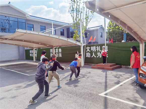 民主村關(guān)愛(ài)兒童成長(zhǎng) 志愿者與留守兒童共同做游戲