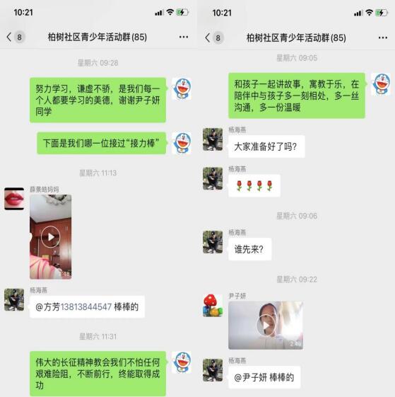 活動開始后,家長和孩子積極響應課堂活動,線上閱讀的書目不僅有夸父追日、后羿射日的神話故事,還有蘊含教育內(nèi)涵的寓言故事,更有長征路上感人肺腑的紅色故事。每一段故事結(jié)束后,線上參與活動的家長們都會在青少年活動群中為分享故事的親子家庭點贊?,F(xiàn)場,社區(qū)工作人員還會對每一段故事進行簡短的總結(jié),帶領家長、孩子一起學習故事中所蘊含的道理,從故事中汲取奮進精神。