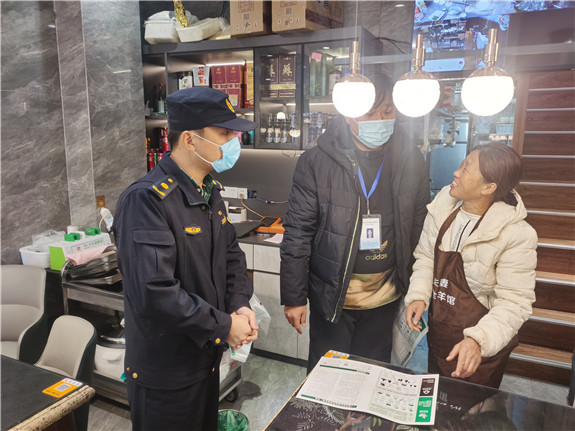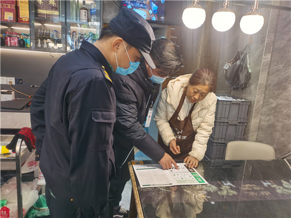 社區(qū)聯(lián)合城管中隊(duì)開(kāi)展商鋪垃圾分類(lèi)檢查