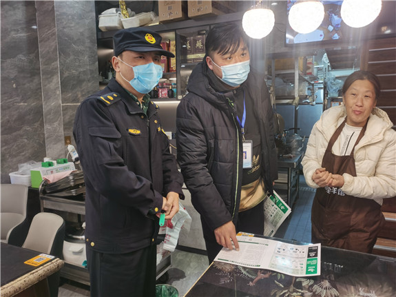 在檢查過(guò)程中,工作人員首先檢查了商鋪的廚余垃圾分類(lèi)情況,也實(shí)地察看了店面內(nèi)的分類(lèi)垃圾桶的使用情況,督促指導(dǎo)經(jīng)營(yíng)業(yè)主做好垃圾分類(lèi)工作,并向經(jīng)營(yíng)者發(fā)放了《南京市生活垃圾管理?xiàng)l例》宣傳冊(cè),宣傳生活垃圾分類(lèi)的各方管理責(zé)任和處罰標(biāo)準(zhǔn),提高商戶(hù)思想認(rèn)識(shí)。