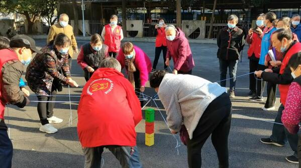 在接力運球的比賽中,老人們手拿管子,頭尾相連,組成通道讓小球滾進終點的杯子中。老人們齊心協(xié)力,順利完成了比賽。在第二個項目中,老人們圍成圈,手拉手,穿過呼啦圈。雖然一開始有些慢,可后來老人們都掌握了竅門,速度也提升了許多。第三個項目,是十分考驗大家協(xié)作能力的合力建塔,老人們一人手拿一根線,合力用中間的鉤子把散落在地的模型疊在一起,搭建成塔。老人們經(jīng)過團結合作,用很短的時間就搭好了塔。經(jīng)過一番激烈的比賽,最終,由第三小組獲得了第一名。