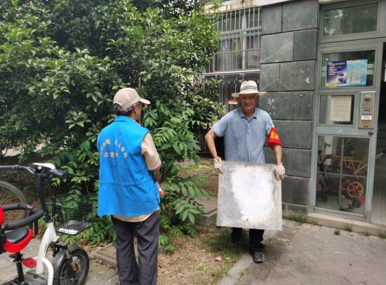 由于社區(qū)所負(fù)責(zé)的兩個(gè)小區(qū)屬于無(wú)物管老舊小區(qū),小區(qū)的整體環(huán)境一直較差。社區(qū)工作人員和志愿者們對(duì)小區(qū)內(nèi)的綠化帶垃圾、樓道雜物、亂停放非機(jī)動(dòng)車以及飛線充電等現(xiàn)象進(jìn)行了集中清理。與此同時(shí),通過張貼海報(bào)、宣傳欄、LED電子屏、“掌上社區(qū)群”、發(fā)放“一封信”等方式廣泛宣傳公益宣傳標(biāo)語(yǔ),加大宣傳力度,營(yíng)造濃厚的氛圍。