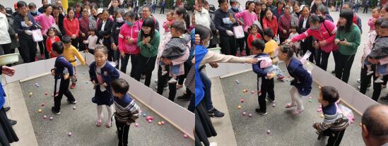 此次趣味運動會活動共分為3個環(huán)節(jié),首先是小朋友們的個人比賽:運送乒乓球。小朋友們要把乒乓球從起點運到前方家長手中的杯子里,中途球不能落地,在規(guī)定時間內(nèi)誰運送的越多就能獲勝。這項游戲看似簡單,但小朋友們在玩的過程中出現(xiàn)了很多問題,整個比賽的過程十分有趣。家長們在一旁為孩子們加油打氣,孩子們也慢慢掌握了技巧,最終在限制時間內(nèi)所有小朋友都取得了不錯的成績。接下來的兩個項目都是團(tuán)體賽,由父母帶著孩子一起比拼。第二個項目是套圈,家長和孩子每人有5次機會,套中的東西越遠(yuǎn),得分越高,最后計算總成績進(jìn)行排名。這個項目是小朋友最喜歡的項目,每個人都躍躍欲試。小朋友們也在家長的指導(dǎo)下順利完成了比賽。最后一個項目是搖搖晃晃,需要家長和小朋友一起通過蹦跳把綁在身上的盒子里的乒乓球全部搖出盒子,比賽最終以時間來決定成績。在家長和小朋友的配合下,順利結(jié)束了游戲。最終,我們以三輪比賽的總成績?yōu)樗袇①惖募彝ミM(jìn)行排名。