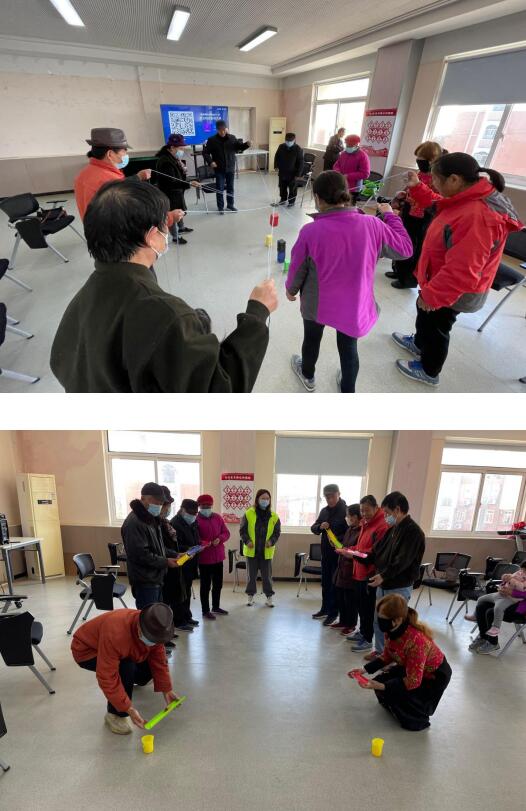 本次情感支持小組主要以趣味運動作為主要形式,共設(shè)有三個項目:珠行萬里接力、一圈到底、合力建塔,通過集體游戲增近老人們的關(guān)系,促進(jìn)情感交流。在游戲過程中,老人們不僅可以感受到成功的喜悅,還能收獲友誼,擴大社會交往網(wǎng)絡(luò),活動現(xiàn)場氣氛熱烈。