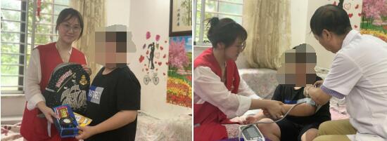 家庭醫(yī)生進(jìn)社區(qū),體檢服務(wù)進(jìn)家庭。翠林山莊社區(qū)兒童主任和堯化街道衛(wèi)生服務(wù)中心的家庭醫(yī)生帶著血壓儀等醫(yī)療器械和所需的尿墊尿不濕、書包文具等物品來到兩名困境兒童劉瀚瀚(化名)和孫小小(化名)家中。在困境兒童的家中,家庭醫(yī)生借助專業(yè)醫(yī)療器械對(duì)于困境兒童的身體狀況進(jìn)行全面檢查,讓無法出行的困境兒童早了解自身的身體狀況,做到早發(fā)現(xiàn)、早診斷、早治療。同時(shí)他們?yōu)槔Ь硟和腿チ藭?、學(xué)習(xí)用品,并詳細(xì)了解了孩子的學(xué)習(xí)生活情況及實(shí)際困難,鼓勵(lì)他們樹立信心,自強(qiáng)不息,勇敢面對(duì)困難,將來成為對(duì)社會(huì)有用的人。社區(qū)不僅對(duì)困境家庭困境兒童進(jìn)行物質(zhì)上的幫助,更重要的是對(duì)困境兒童和這個(gè)家庭進(jìn)行精神上的關(guān)懷,讓他們感受到社區(qū)大家庭的關(guān)愛與溫暖。