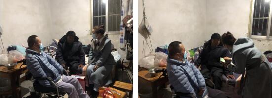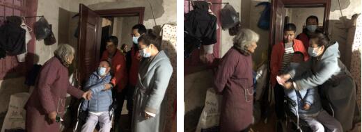 小分隊(duì)于11月26日下午6點(diǎn)順利抵達(dá)灌南,此時(shí)天已經(jīng)完全黑了,在當(dāng)?shù)刂驹刚叩膸ьI(lǐng)下連夜到當(dāng)?shù)匚繂?wèn)困難群體,在去往第一戶家庭的路上,由于車輛不能完全開到家中,需要步行幾百米的泥濘小路,君子老師在幾名志愿者的配合幫助下抵達(dá)受助群體家中。這是一位80多歲高齡的孤寡老人,平時(shí)都靠鄰居照顧,工作人員詳細(xì)了解老人近期身體狀況,耐心詢問(wèn)家里的生活困難,并送上了冬被、大米、牛奶,機(jī)構(gòu)曹老師還送上了慰問(wèn)金,老人看到君子老師坐在輪椅上還來(lái)幫助自己,深受感動(dòng),臨走時(shí)緊握君子老師和曹老師雙手,眼眶閃爍著淚花,激動(dòng)地說(shuō):“感謝你們來(lái)看望我!”。